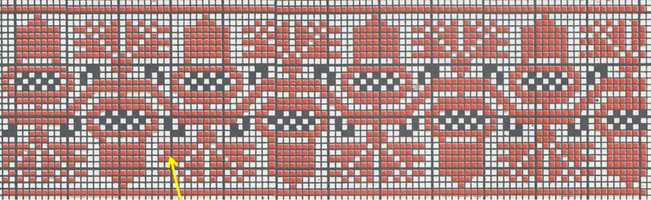 A note about the pattern, there is an error on the 1st leaf on the 3rd set from the left it has an extra stitch on the left side (see yellow arrow).