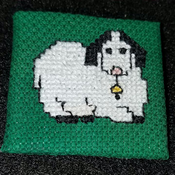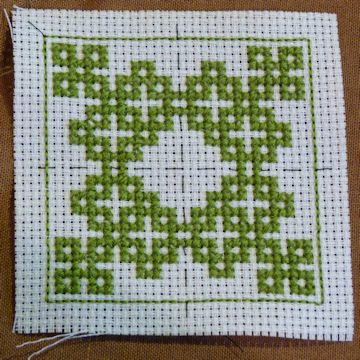 14 count fabric, and approx. 2 inches square on 7 count fabric.