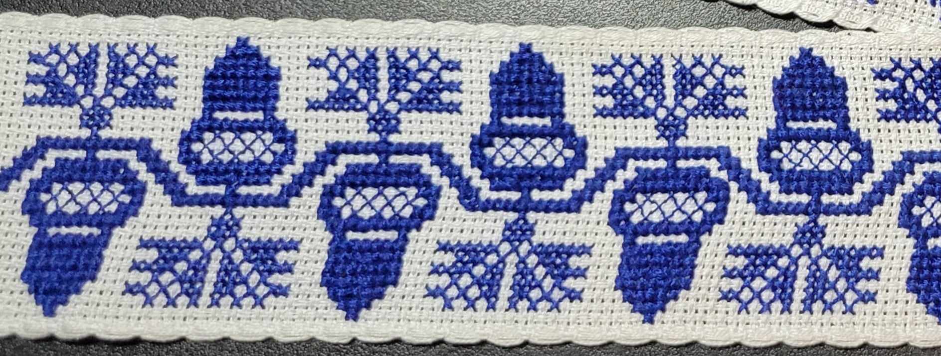 Shortly afterwards, things changed in her life and she couldn't follow through with the contest. Tracy the Gray took up my challenge and we agreed to stitch 1 yard of that trim. April 22, 2021: I finished my yard of acorn trim July 2021: The results were judged by Melinda Sherbring. Tracy won by 2 points, with 55 out of 55 points! |