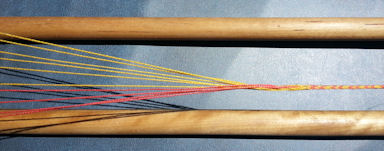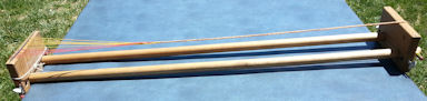 Detail Photos of My LoomWhen I first learned to fingerloop braid, I was frustrated by the length limit imposed by only being able to tighten the braiding by spreading your arms to either side. Trying to do a long braid means having a very loose braid at the beginning. So I went home and looked for a way to make longer braids. I found a long "indian beading loom" a friend had made for me and things clicked! The other frustrating thing about fingerloop braiding for me was that, once started, you have to keep braiding until you're done. Otherwise the loops (or bowes) get tangled and your braid is ruined. A very useful thing about using the beading loom is that it has springs that hold the beading's warp threads, the spring at the front of the loom is ideal for holding the loops of thread when I want to put the braiding down for a bit. Go to my Loom page for Photos details of my Loom |