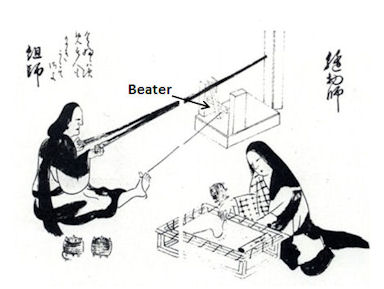 same device, is called ashiuchidai (foot beater stand). The sword-shaped beater is connected to the