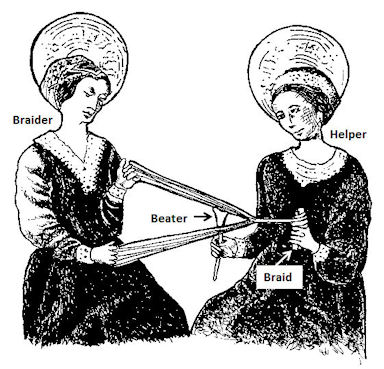 "One braider and helper pictured in 1465 CE, from the Spanish altar