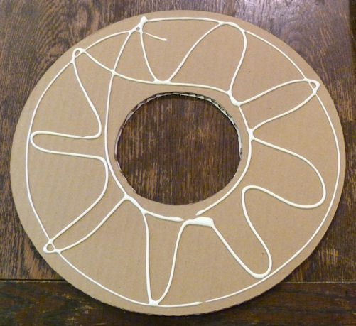 - I use Aleene's Tacky Glue and squiggle it around on one of the cake circles. (top photo on left)